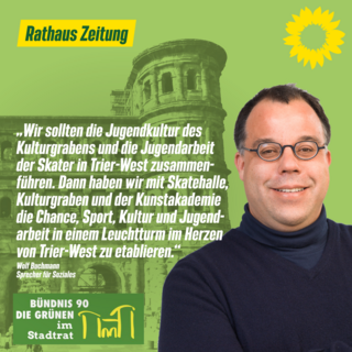 Deshalb sollten wir die Jugendkultur des Kulturgrabens und die Jugendarbeit der Skater in Trier-West zusammenführen. Dann haben wir mit Skatehalle, Kulturgraben mit weiteren Projekten und der Europäischen Kunstakademie die Chance, Sport, Kultur und Jugendarbeit in einem Leuchtturm im Herzen von Trier-West, und gut von der Innenstadt erreichbar, zu etablieren.