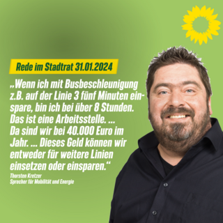Wenn ich mir die Linie 3 angucke, die von der Anfangs-zu-Endhaltestelle circa gerundet 50 Mal am Tag fährt und in die andere Richtung zurück auch nochmal 50 Mal. Das ist das 100 Mal am Tag. Wenn ich auf der Strecke fünf Minuten einspare, bin ich bei über acht Stunden. Das ist eine Arbeitsstelle. Bei einem Arbeitgeberbrutto-Durchschnitt für einen Busfahrer in Deutschland von 3.600 Euro sind wir bei 40.000 Euro im Jahr, die wir einsparen können. Wenn man die Linie 13, die auf einer ähnlichen Strecke fährt, da auch die fünf Minuten nehmen, sind's schon 80.000 Euro. Und wenn wir sagen, es sind sechs Minuten, die eingespart werden können, sind das 100.000 Euro nur auf zwei Linien, die wir jährlich einsparen können und die wir natürlich an anderer Stelle sinnvoller einsetzen können.