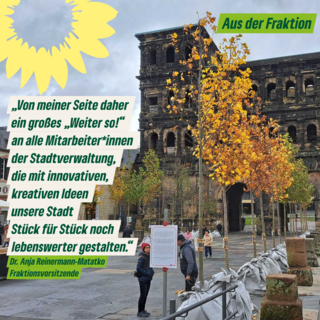 Ich freue mich sehr über den frischen Wind im Umweltdezernat. Experimente wie die Porta-Bäume zeigen anschaulich, wovon wir Grüne seit Jahrzehnten reden: so sieht eine lebenswerte Stadt aus, die zum Verweilen einlädt.