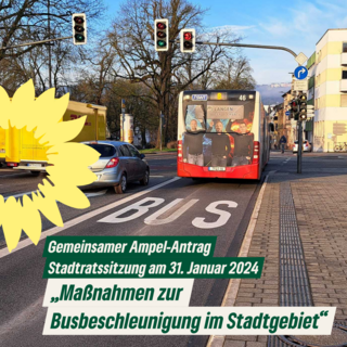 die Fraktionen Bündnis 90/Die Grünen, SPD und FDP bitten darum, den gemeinsamen Antrag „Maßnahmen zur Busbeschleunigung im Stadtgebiet“ auf die Tagesordnung der Sitzung des Stadtrats am 31. Januar 2024 zu setzen.