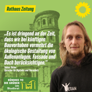 Es ist daher dringend an der Zeit, dass wir bei künftigen Bauvorhaben vermehrt die ökologische Gestaltung von Außenanlagen, Fassade und Dach berücksichtigen. Dies gilt sowohl für die privaten, aber in jedem Fall für öffentliche Bauvorhaben.