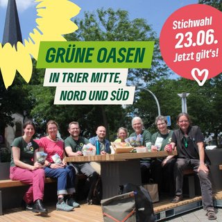 In allen drei Stadtteilen, in Trier-Nord, Trier-Mitte/Gartenfeld und Trier-Süd, stehen am Sonntag, 23. Juni, die aktuellen GRÜNEN Ortsvorsteher*innen in der Stichwahl.