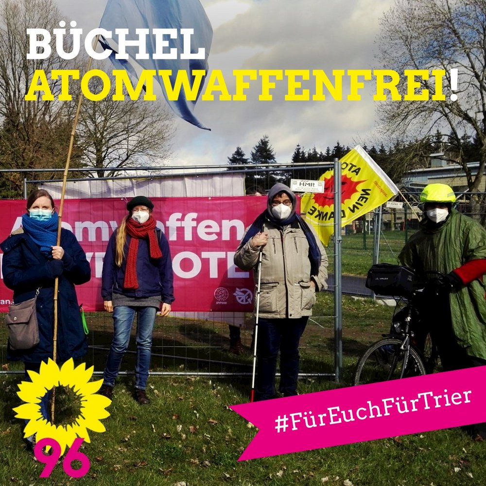 Die Friedensbewegung – und mit ihr auch Die Grünen – setzen sich seit Jahrzehnten dafür ein, dass die Atomwaffen abgezogen werden. Mit Erfolg: In diesem Jahr, am 22. Januar 2021, trat der UN-Atomwaffen-Verbotsvertrag in Kraft.Mehr Informationen zu Büchel: http://www.buechel-atomwaffenfrei.de