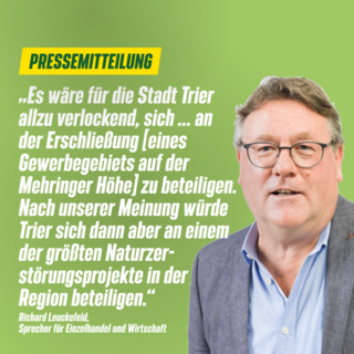 Nach Meinung der Grünen würde Trier sich dann aber an einem der größten Naturzerstörungsprojekte in der Region beteiligen. Auch hätte die Stadt voraussichtlich im Rahmen einer Minderheitsbeteiligung am Zweckverband kaum Einflussmöglichkeiten auf Nutzung und Ansiedlung auf diesem sensiblen Gebiet.