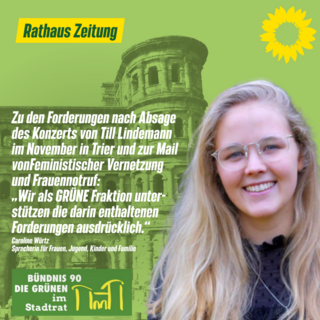 In den vergangenen Tagen sind die Forderungen, das Konzert von Till Lindemann am 20. November 2023 in der Arena Trier abzusagen, lauter geworden. Unter anderem haben die Feministische Vernetzung und der Frauennotruf hierzu eine Mailaktion gestartet. Wir als Fraktion Bündnis 90/die Grünen unterstützen die darin enthaltenen Forderungen ausdrücklich.