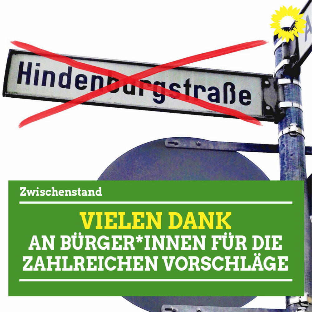 Michael Düro - GRÜNER Ortsvorsteher in Mitte/Gartenfeld gibt hinsichtlich der Umbenennung der Hindenburgstraße einen Zwischenstand bekannt: "18 Vorschläge der Bürger*innen sind noch im Rennen".