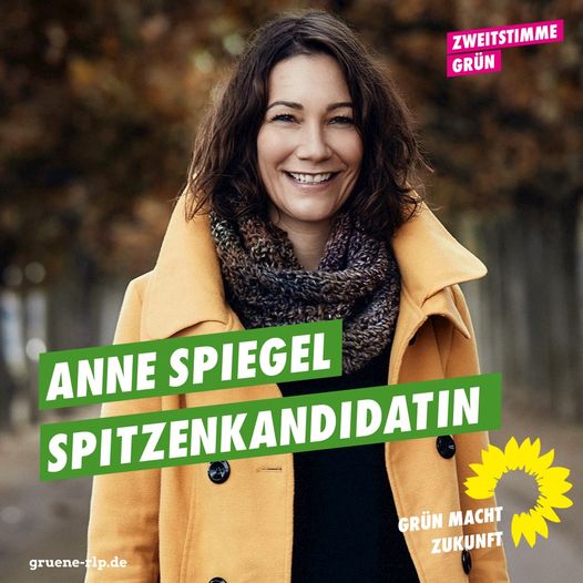 Daher Zweitstimme GRÜN! Damit wählt ihr die Kandidierendenliste mit Anne Spiegel auf Platz 1.