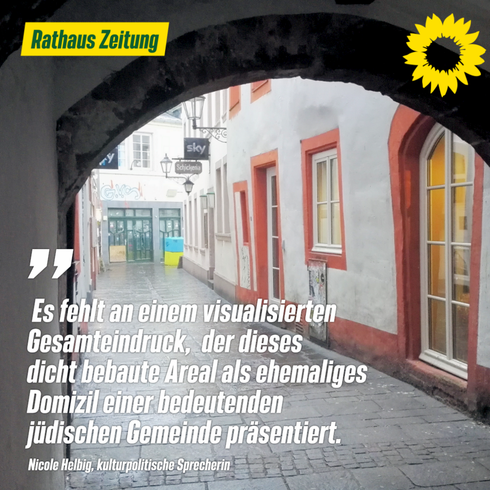 Das Erscheinungsbild im Bereich der Simeonstraße muss aufgewertet werden, z.B. durch einen Farbkontrast im Pflaster, der den Bereich besser erkennbar macht. Wir benötigen an dieser Stelle ein Projekt „Gegen das Vergessen“, das die Wahrnehmung des jüdischen Lebens und der mittelalterlichen jüdischen Gemeinde stärkt.