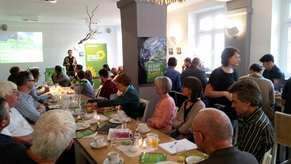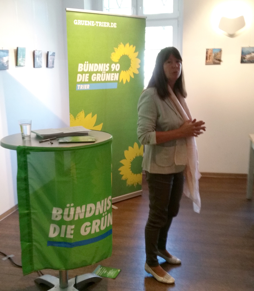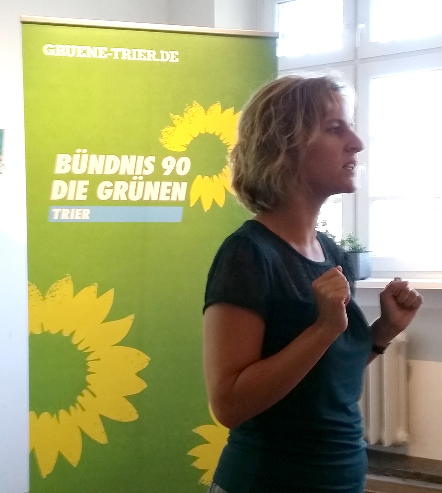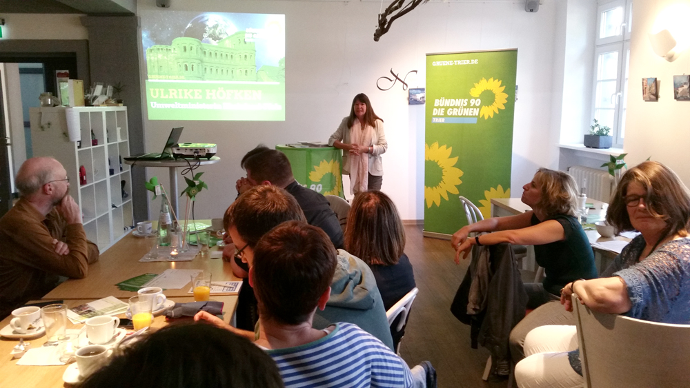 Fahrradstreifen statt Autostraßen, Straßenbahnen statt Parkhäusern, Fußgängerboulevards statt Stadtautobahnen - was die Grüne Mainzer Verkehrs- und Umweltdezernentin Katrin Eder beim Klimafrühstück in Trier aus der Landeshauptstadt zu berichten hatte, versetzte die Gäste im Café Balduin ins Staunen. Seit fast 40 Jahren gibt es in Mainz ein Umweltamt, Umwelt- und Klimaschutz ist dort schon seit Jahrzehnten Thema. Aber erst seit eine Grüne das entsprechende Dezernat leitet, ist so richtig Bewegung in das Thema gekommen.