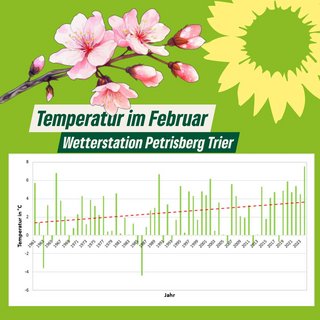 Osterglocken im Februar: Der zweite Monat des Jahres 2024 hat sich höchst frühlingshaft verabschiedet. Deutschlandweit stellte er alles in den Schatten, was seit 1881 aufgezeichnet wurde. Mit durchschnittlich 7,5 Grad war er in der Stadt Trier (Wetterstation Petrisberg) sogar deutlich wärmer als ein durchschnittlicher März (4,9 °C); er entsprach eher einem April (8,4 °C).