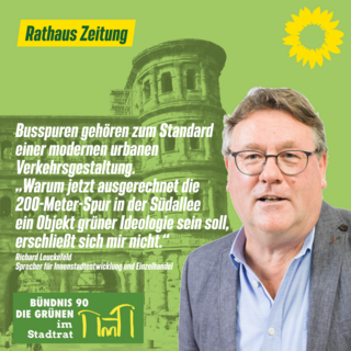 Nun sind Busspuren in allen größeren Städten in Deutschland nichts Neues. Sie gehören zum Standard einer modernen urbanen Verkehrsgestaltung. Warum jetzt ausgerechnet die 200-Meter-Spur in der Südallee ein Objekt grüner Ideologie sein soll, erschließt sich mir nicht.