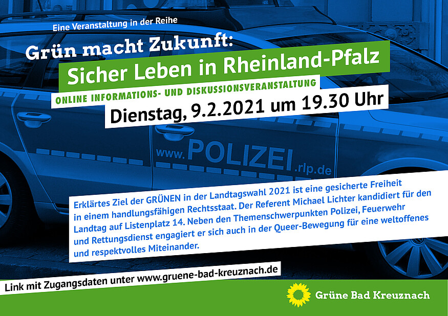 Corona-Leugner*innen, Rechtsextremismus, religiöse Radikalisierung – dies und viel mehr stellt den demokratischen Rechtsstaat vor neue Herausforderungen. Erklärtes Ziel der GRÜNEN in der Landtagswahl 2021 ist eine gesicherte Freiheit in einem handlungsfähigen Rechtsstaat. Wie das aussehen soll? Das diskutiert unser Landtagskandidat Michael Lichter, stellvertretender Vorsitzender unserer Stadtratsfraktion, mit den Grüne Bad Kreuznach: Dienstag, 9. Februar, ab 19.30 Uhr digital.