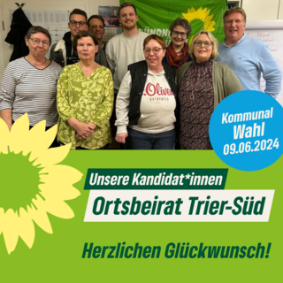 Die GRÜNEN Trier-Süd haben ihre Kandidierendenliste für die Ortsbeiratswahl am 9. Juni 2024 aufgestellt.