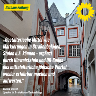 Das mittelalterliche jüdische Viertel wird in der öffentlichen Wahrnehmung leider nur auf die Judengasse reduziert. Es bestand jedoch nicht nur aus der Judengasse, sondern bezog die Jakobstraße, Stockstraße und den vollständig überbauten Stockplatz mit ein. Gestalterische Mittel wie Markierungen in Straßenbelägen, Stelen u.ä. können – ergänzt durch Hinweistafeln und QR-Codes – dieses Viertel wieder erfahrbar machen und aufwerten.