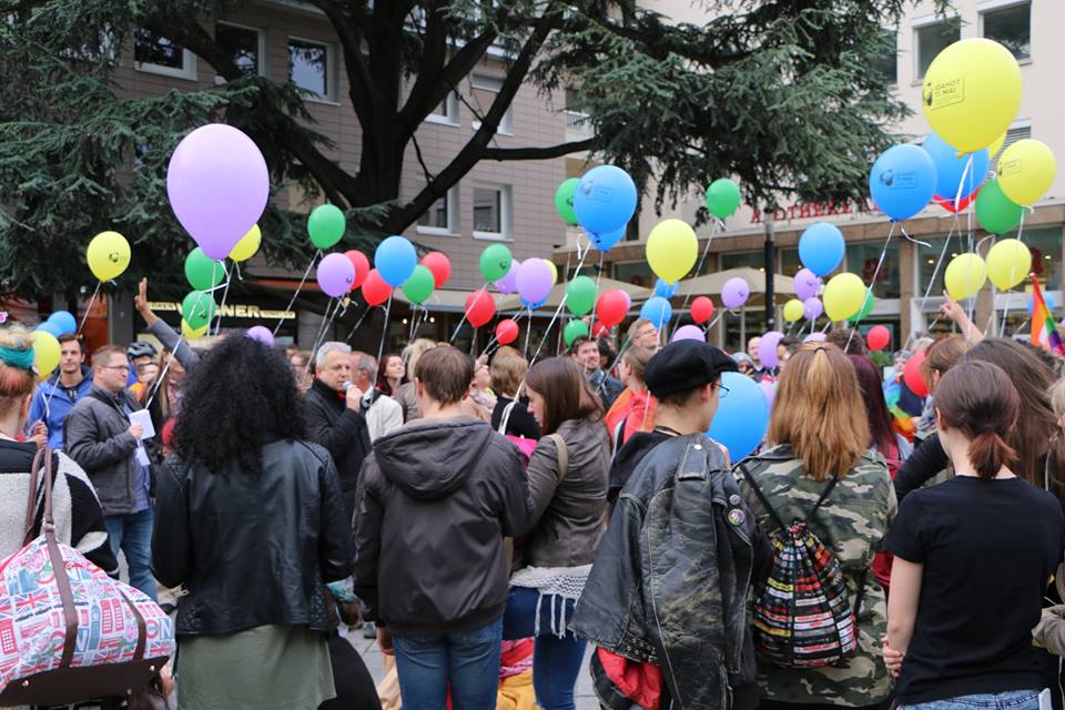 In Trier feierten mehrere Hundert Menschen den Tag mit einem Rainbow-Walk von der Porta bis zum Kornmarkt. Dort ließen sie zum Ende einer Kundgebung beim Rainbow-Flash Luftballons mit Botschaften steigen.