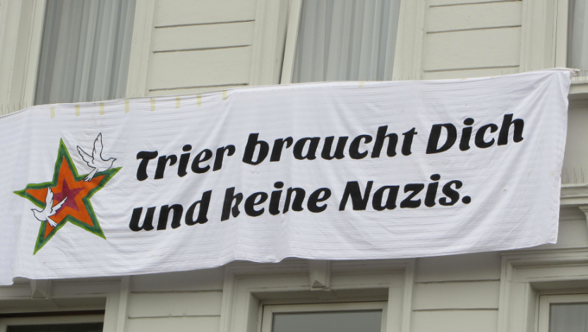 Offenbar hat allein schon die Mobilisierung zu unserer Gegenkundgebung deutlich gemacht: In Trier ist kein Platz für rassistische Hetze und braunes Gedankengut! Die für den letzten Adventssamstag angekündigte Demo der Republikaner unter dem Motto "Für weiße Weihnachten - gegen die Islamisierung des Abendlandes" haben die Rechtsextremen kurzfristig abgesagt. Angeblich sei der Hauptredner erkrankt...
