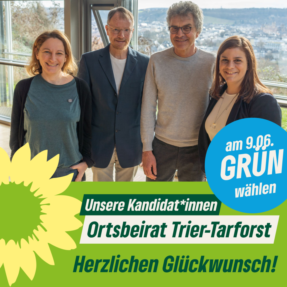 Gestern haben die GRÜNEN aus Tarforst Miriam Machwitz, Jens Sartor, Klaus Sauerborn und Katharina Thiel auf die Ortsbeiratsliste gewählt.
