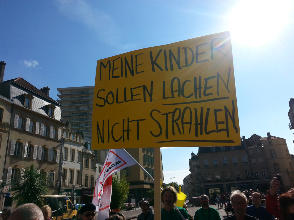 70 Jahre nach Hiroshima und Nagasaki, nach zahlreichen Störfällen und größeren Unfällen von Harrisburg über Tschernobyl bis Fukushima demonstrierten französische, deutsche, luxemburgische und japanische Atomkraftgegner in Metz für eine Zukunft ohne Atomwaffen und Atomkraft. Luxemburgischen Atomkraftgegner moderierten die zweisprachige Kundgebung.