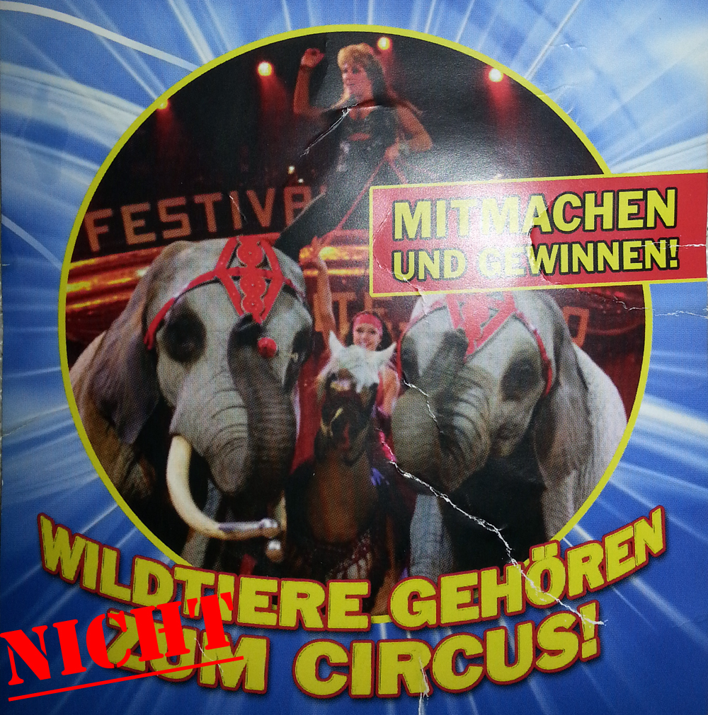 Immerhin hat der Zirkus dieses Mal gänzlich auf Wildtiere wie etwa Löwen verzichtet, die schon zum Einsatz kamen und auch in Zukunft wieder zum Einsatz kommen sollen. Aufgrund von Protesten aus der Bevölkerung ist der Veranstalter aber offenbar in die Defensive geraten und sammelt schon einmal vorsorglich Unterschriften „gegen ein kommunales Tierverbot“, so der Text auf einem Flyer, den der Zirkus verteilt. Gelockt wird mit einem Gewinnspiel unter der Überschrift „Wildtiere gehören in den Circus“: Nur wer sich gegen ein Verbot ausspricht, darf daran teilnehmen.