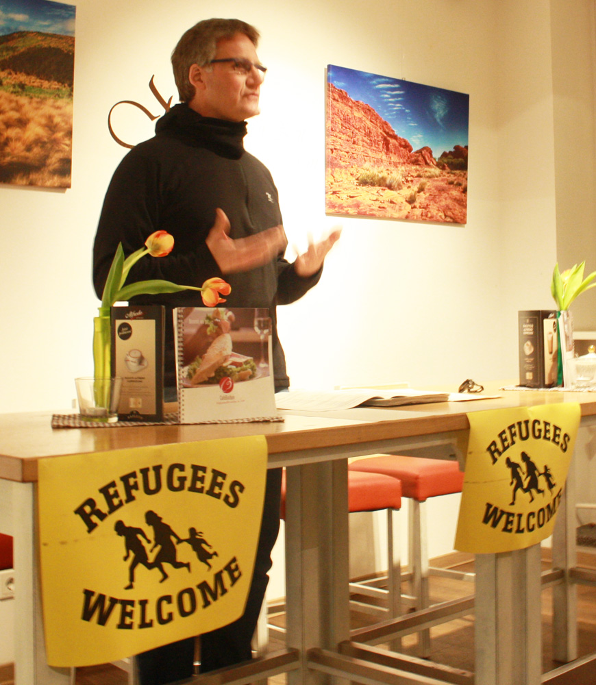 PolitikerInnen aus Stadt und Land, Ehrenamtliche aus der Flüchtlingsarbeit, Anbieter von Sprachkursen und schließlich: Flüchtlinge selbst - unsere Diskussionsrunde "Willkommen... in der Wirklichkeit" brachte an einem Abend VertreterInnen derjenigen Ebenen zusammen, die auch in der täglichen Arbeit zusammenarbeiten (sollten). Zum Austausch- und Netzwerkgedanken passte auch der Umstand, dass die Veranstaltung von Grünen in Trier und Trier-Saarburg gemeinsam organisiert worden war - so wie schon die Aktion gegen die Maut- und Autobahnpläne von Verkehrsminister Alexander Dobrindt vor zwei Wochen. Die gemeinsamen Aktivitäten sollen Auftakt sein zu einer intensiveren Zusammenarbeit zwischen den beiden Kreisverbänden.