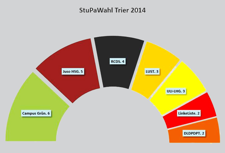Aus den Wahlen zum Studierendenparlament der Universität Trier, die vom 2. bis 4. Dezember stattfanden, ist Campus:Grün als stärkste Kraft hervorgegangen. Die Gruppe kann nun - rein rechnerisch - zusammen mit den Jusos und der Linken Liste die Mehrheit im Studierendenparlament bilden.