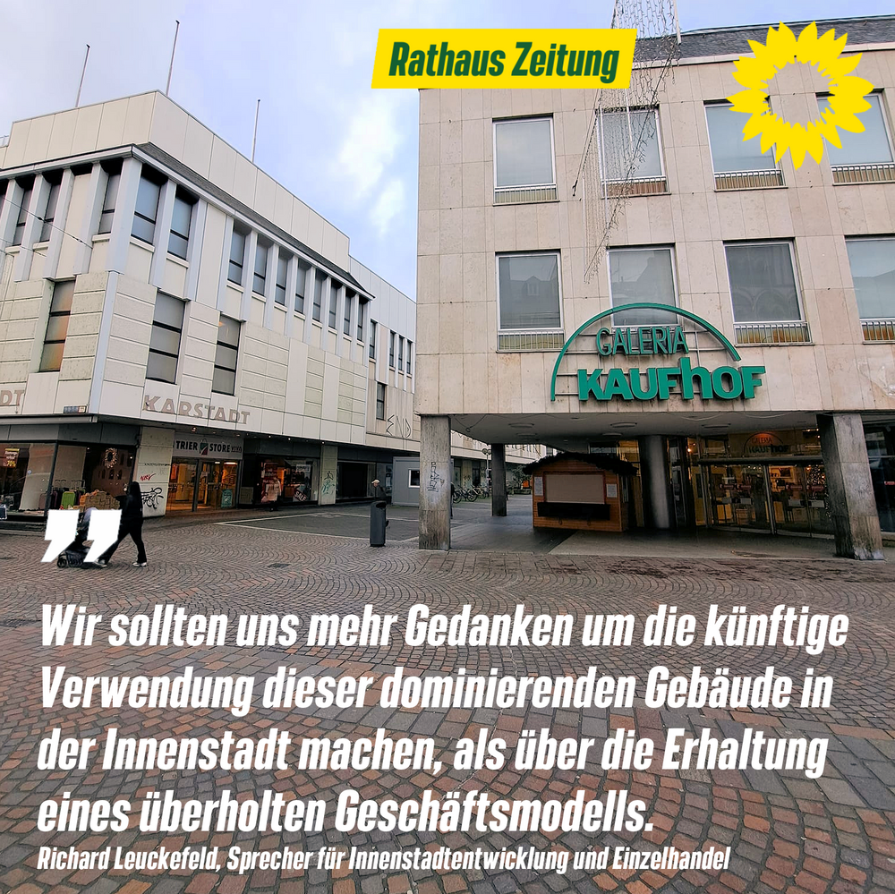 Trotz der Hoffnung auf vorübergehenden Erhalt dieser beiden Häuser ist ihr endgültiges Ende absehbar. Deshalb sollten wir uns mehr Gedanken um die künftige Verwendung dieser dominierenden Gebäude in der Innenstadt machen, als über die Erhaltung eines überholten Geschäftsmodells. Auch die Hoffnung, Firmen wie Peek & Cloppenburg würden die Häuser komplett übernehmen, ist trügerisch. Für eine Stadt wie Trier werden diese großen Flächen für einen Textiler nicht benötigt.